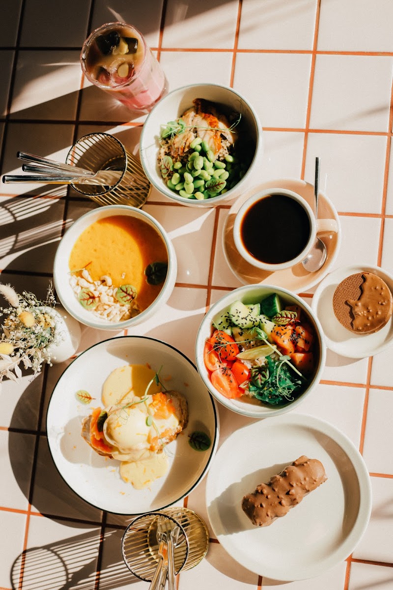 As you step inside, you'll be greeted by a beautifully designed interior featuring a harmonious blend of colors that are both bright yet soothing. The café's attention to detail is evident, from the charming tableware to the inviting live flowers that grace each table, creating a warm and welcoming environment. Customers rave about the atmosphere—perfectly curated to enhance your dining experience.